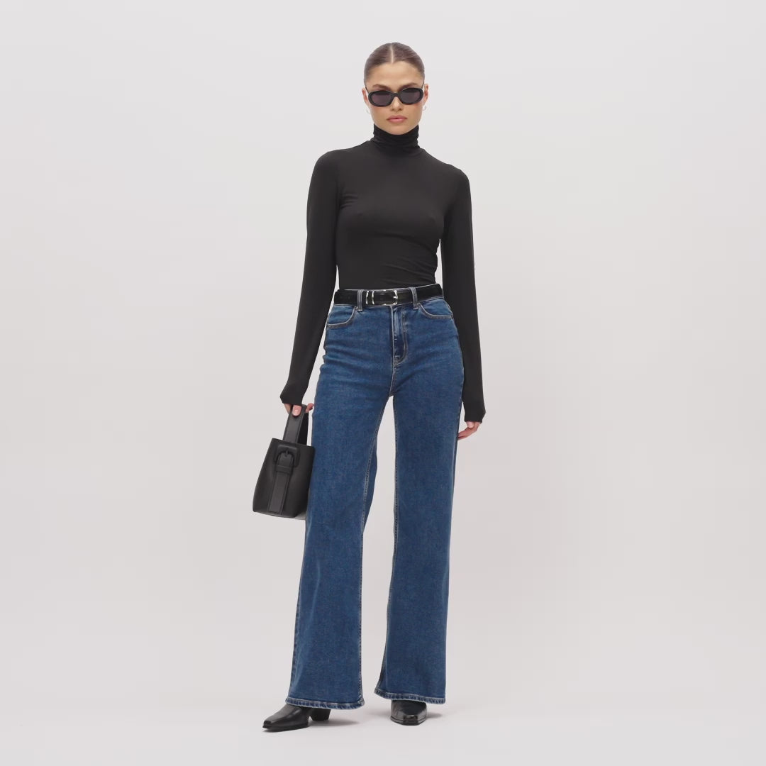 Experience the classic look of denim with the comfort of incredible stretch. Our high-waisted, relaxed wide-leg jeans are crafted from a proprietary denim blend that’s both very stretchy and thick, providing the feel of traditional denim with added flexibility. Versatile and perfect for everyday wear, these jeans are a must-have in your capsule wardrobe.