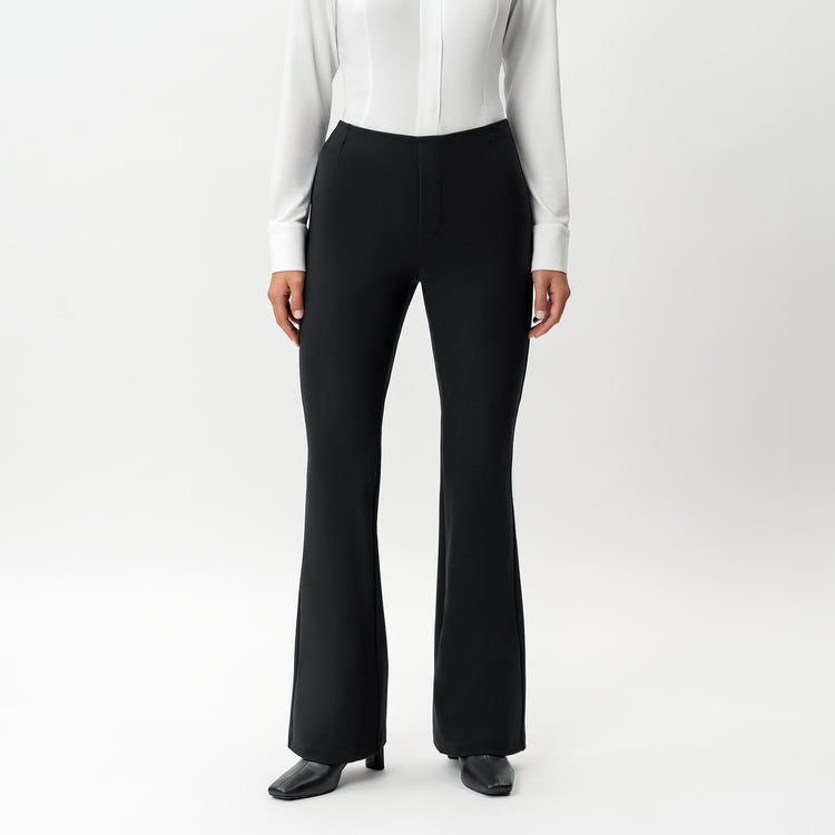 Discover the perfect blend of style and comfort with our tailor-inspired bootcut trousers. Featuring an invisible waistband and refined dart details and sleek pocketless design, these trousers are crafted from a luxurious double-knit fabric that is both heavy and soft, with a touch of stretch for all-day comfort. Ideal for any occasion, they offer a sophisticated look without compromising on ease.