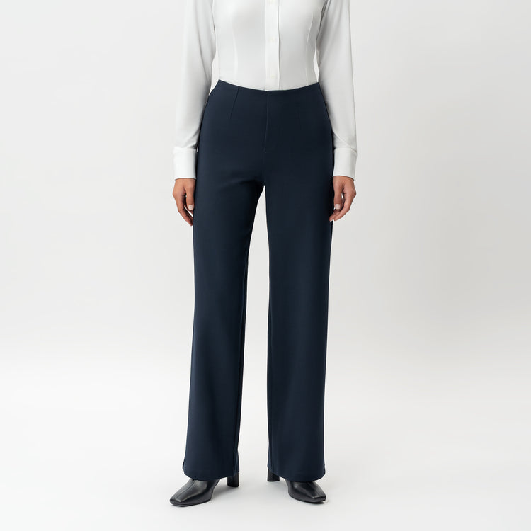 Discover the perfect blend of style and comfort with our tailor-inspired relaxed trousers that are ideal for work and leisure. Featuring an invisible waistband and refined dart details, these trousers are crafted from a luxurious double-knit fabric that is both heavy and soft, with a touch of stretch for all-day comfort.